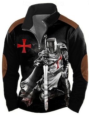Herren Tempelritter Pullover Lässig Langarm Stehkragen Party Club Rote Blau Grau 3D-Druck Viertel Postleitzahl Herbst Winter Designer S M L XL XXL 3XL