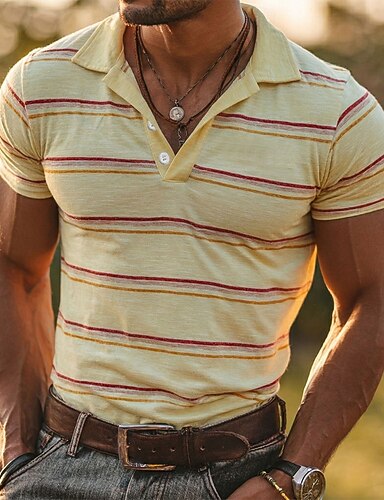 Herren Gestreift Poloshirts Kurzarm Polo-Shirts Hemden mit Kragen Lässig Athleisure Knöpfe Frühling & Sommer Blau Gelb Purpur