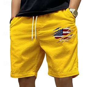 Herren Shorts Sommershorts Freizeitshorts Cordshorts Tasche Elastischer Bund Kordelzug Nationalflagge Komfort Atmungsaktiv Kurz Outdoor Urlaub Sport Lässig Schwarz Weiß
