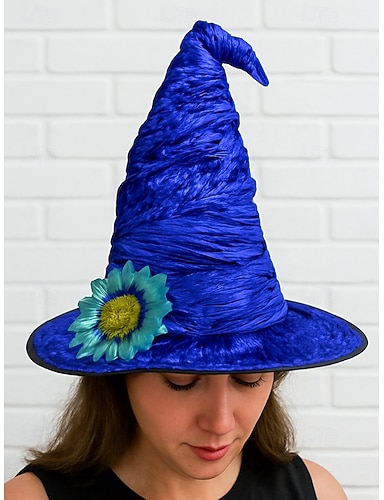 Damen Halloween Hexenhut – faltbarer bunter Spitzhut mit Blumendekor für Kostümparty, Cosplay und Festival-Outfits