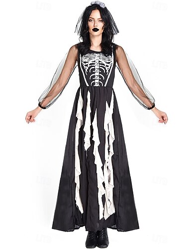 Totenkopf Gespenstische Braut Teufel Halloween Cosplay Kostüm Partykostüm Maskerade Outfits Cosplay Erwachsene Damen Maskerade Karneval Leistung Party Halloween Einfache Halloween-Kostüme Verkleiden