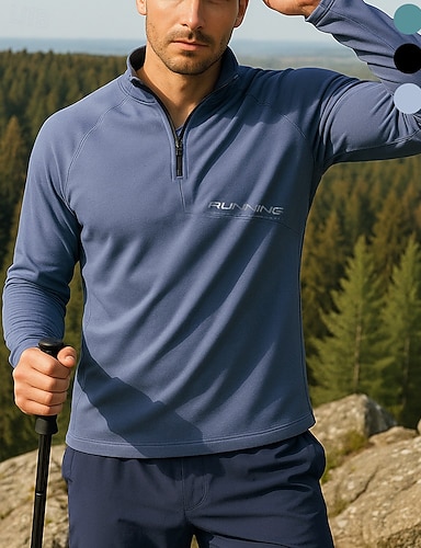 Herren Polo-Sweatshirt Laufoberteil Wanderspitze Langarm Stehkragen T-Shirt Oberteil Außen Schnelltrocknend Leicht Elastisch Atmungsaktiv Frühling Herbst Viertelreißverschluss Polyester Dunkelgrau