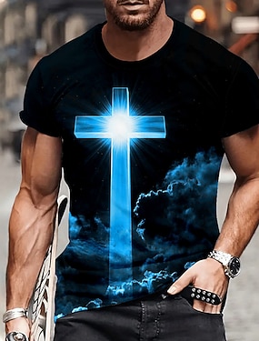 Herrenbibel Glaube Christliches T-Shirt Kurzarm T-Shirt 3D Druck Rundhals T-Shirt Religiös Athleisure Straße Sport Outdoor Schwarz Dunkelgrün Dunkelblau Sommer Frühling Kleidung