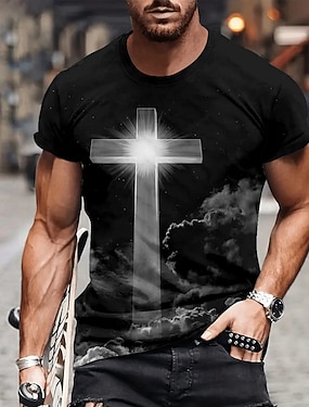 Herren Bibel Kurzarm T-Shirt 3D-Druck Rundhals Shirt Casual Tiefpurpur Meliert Grau Schwarz Sommer Kleidung Apparel Normal