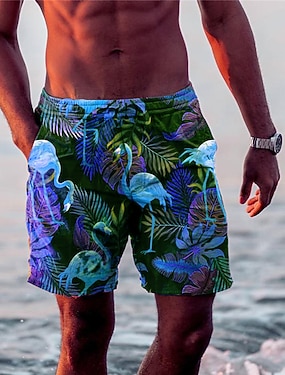 Herren Tiermotiv Cartoon Flamingo Badehosen Badeshorts Boardshorts Mittlere Taille Lustig Hawaiianisch Strandurlaub Seitentaschen Netzfutter Elastischer Kordelzug in der Taille Designer Bekleidung
