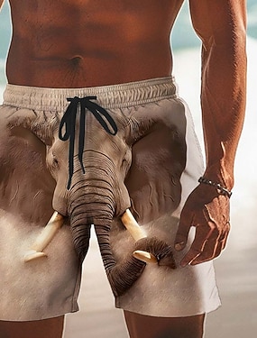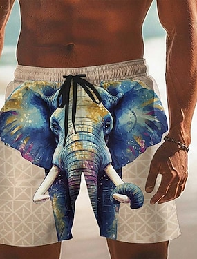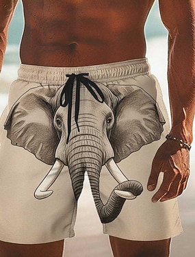 Herren Tiermotiv Elefant Optische Täuschung Badehosen Badeshorts Boardshorts Mittlere Taille Lustig Hawaiianisch Strandurlaub Seitentaschen Netzfutter Elastischer Kordelzug in der Taille Designer