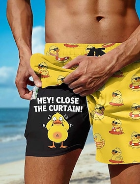 Herren Banane Teekanne Lustiger Slang Badehosen Badeshorts Boardshorts Mittlere Taille Lustig Lässig Strandurlaub Seitentaschen Netzfutter Elastischer Kordelzug in der Taille Designer Bekleidung