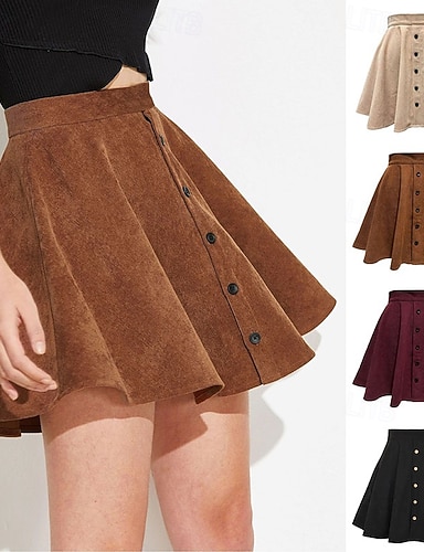 Damen Rock aus Wildlederimitat Mode Lässig Knielang Hohe Taille Röcke Einfach Mikroelastisch Täglich Straße Schwarz Kamel Braun Khaki Frühling Velourleder Polyester