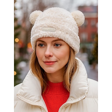 Weihnachtsmütze aus Kunstpelz mit Ohrenschützer für Damen, kuschelige Winterkopfbedeckung aus mehreren Materialien mit Bommeln, stilvolles und warmes Urlaubsaccessoire