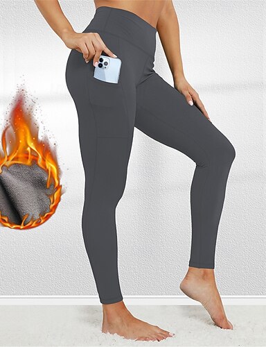 Damen Yogahose Fleece-gefütterte Leggings Yoga-Leggings Hohe Taille Pilates Fitnesstraining Training Strumpfhosen Einfarbig Schwarz Dunkelmarine Dunkelgrau Fleece Herbst Winter Sport Sportkleidung