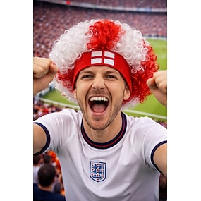 Englische rot-weiße Cheerleader-Afro-Perücke für Sportveranstaltungen