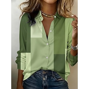 Damen Hemd Grafik Geometrisch Farbblock Vintage Stilvoll Modern Langarm Hemdkragen Normale Oberteile Täglich Ferien Violett Orange Grün Sommer Frühling