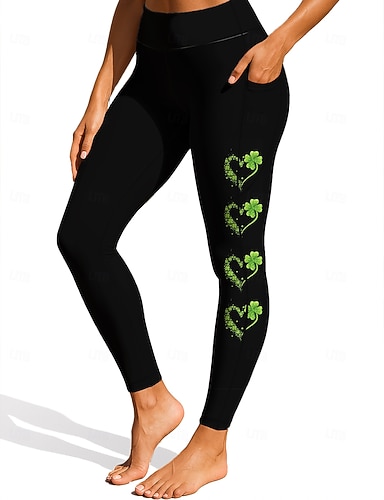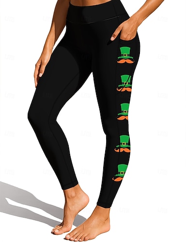 St. Patrick Damen Pilates-Leggings Fitnesshose Trainingsleggings Taschen Stempelsteuer Seitentaschen Pilates Fitnessstudio Fitnesstraining Hosen Strumpfhosen Leggings Farbblock Grün Sport
