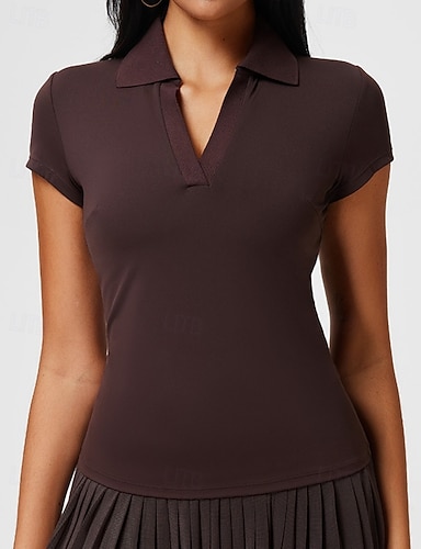 Damen Einfarbig Sportshirt Tennis-T-Shirt Tennis-Poloshirts Tanktops Kurzarm Schnelltrocknend Schlank Atmungsaktiv Tennis Laufen Pickleball V Ausschnitt Oberteil Schwarz Weiß Kaffee Tennisbekleidung