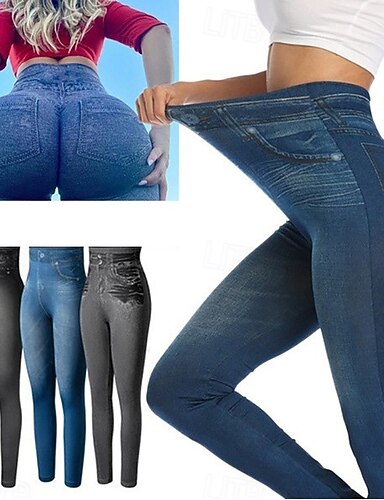 damen mode strumpfhose leggings knöchellang hose lässig wochenende dehnbar einfarbig bauchkontrolle po-lift hohe taille skinny blau 2xl