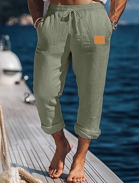 Herren Leinenhosen Caprihose Sommerhose Strandhose Tasche Elastischer Bund Einfarbig Komfort Atmungsaktiv Wadenlang Täglich Outdoor Strand Urlaub Mode Blau Cachi scuro Unelastisch