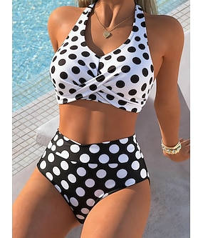 Damen Bikini 2-teiliges Badeanzug Farbblock Hohe Taille Modisch Stilvoll Grafisch Polka Dot Ärmellos Badeanzüge