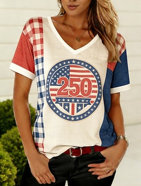 Amerikanischer Unabhängigkeitstag Damen T Shirt T-Shirt Druck Grafik Stilvoll Klassisch Lässig Kurzarm V Ausschnitt Normale Oberteile Täglich Ausgehen Wochenende Blau Schwarz Weiß Wein Grün Sommer