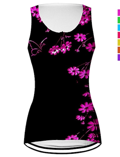 Damen Fahrradweste Radtrikot Grafik Blumenmuster Ärmellos Fahhrad Weste / Gilet Trikot Oberteil mit 3 Gesäßtaschen Mountainbike MTB Straßenradsport Schnelltrocknend Rückentasche