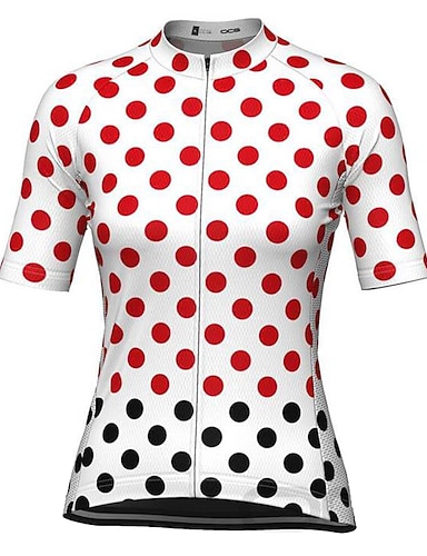 Damen Radtrikot Tupfen Kurzarm Fahhrad T-Shirt Trikot Oberteil mit 3 Gesäßtaschen Mountainbike MTB Straßenradsport Schnelltrocknend Reflektierende Streifen Feuchtigkeitsableitend Atmungsaktiv Sport