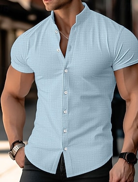 Herren Leinenhemd Popover-Hemd Freizeithemd Strandhemd Stehkragenhemd Einfach Strand Urlaub Blau Schwarz Weiß Rosa Langarm Henley Frühling & Sommer Bekleidung