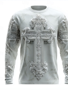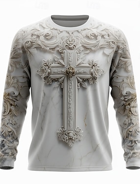 Unisex T-Shirt Tee Graphic Templar Cross Henley Schwarz Hellbraun Braun Dunkelgrau 3D-Druck Ritter Plus Size Outdoor Street Langarm Schnürung Druck Kleidung Mode Designer Stylisch