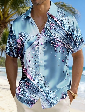 Herren Geometrisch Wellen Abstrakte Kunst Hemd Satinhemd Kleidhemd Kurzarm Modisch lässig Täglich Urlaub Sommer Frühling Umlegekragen 3D-Druck Hemden mit Knopfleiste Blau Purpur Orange Grün