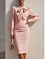 Damen Midikleid Figurbetontes Kleid Halbformelle Kleider Büro Schlank Einfach Dreiviertelarm Rundhalsausschnitt Rosa Frühling Herbst