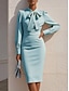 Damen Midikleid Figurbetontes Kleid Halbformelle Kleider Büro Schlank Einfach Langarm Hemdkragen Rosa Blau Aprikose Herbst Winter
