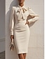Damen Arbeitskleidung Etuikleid Elegant B¨¹ro Täglich Midikleid Rüschen Gespleisst V Ausschnitt Langarm Glatt Regular Fit Schwarz Weiß Khaki Herbst S M L XL 2XL