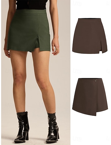 Damen Urlaubsrock Mode Lässig Mini Hohe Taille Röcke Einfach Unelastisch Täglich Straße Wein Schwarz Armeegrün Marineblau Frühling Polyester
