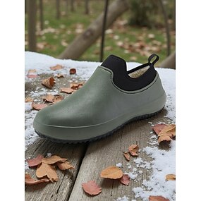 Grüne wasserdichte Damen Winterschuhe zum Hineinschlüpfen mit warmem Fleecefutter – strapazierfähige rutschfeste Garten- und Outdoor-Wanderschuhe