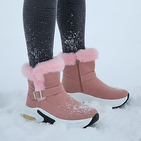 Damen Stiefel Schneestiefel Outdoor Täglich Einfarbig Mit Fleece Futter Stiefeletten Flacher Absatz Runde Zehe Lässig Komfort Kunstpelz Reißverschluss Schwarz Weiß Rosa