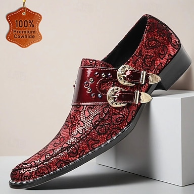Herren Mardi Gras Rote Verzierte Loafer mit Schnallen – Einzigartige formelle Schuhe für besondere Anlässe Partys und stilvolle Veranstaltungen