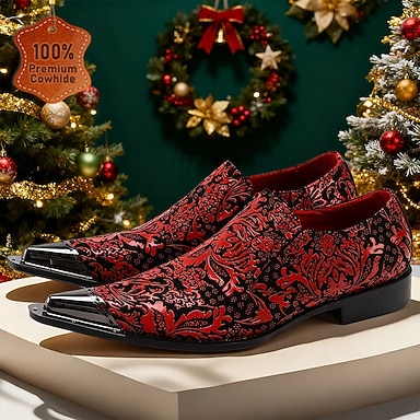 rote Herren-Loafer aus echtem Leder mit spitzer Spitze und aufwendigen Details – elegante Weihnachtsschuhe für formelle und halbformelle Anlässe