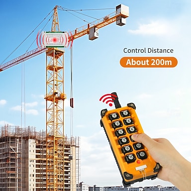 Industrielle drahtlose 8-Kanal-Funkfernsteuerung (433 MHz FSK-Frequenzsprungverfahren) für Krane, Hebezeuge, Winden und Hebezeuge, 8 Start/Stopp-Tasten, Universalempfänger (12–36 V DC, 100–240 V AC)