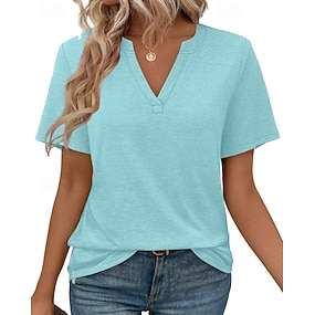 Damen T Shirt T-Shirt Einfach Mode Klassisch Lässig Kurzarm V Ausschnitt Normale Oberteile Täglich Ausgehen Wochenende Schwarz Weiß Rosa Purpur Grün Sommer Frühling