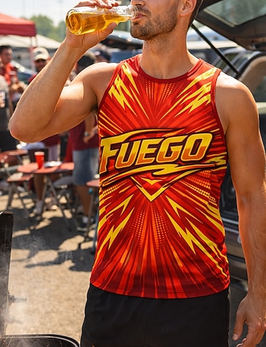 Herren Fußballtrikot Buchstabe Abstrakt Spanien Workout-Tanktop Lauf-Tanktop Sport-T-Shirt Sommer Ärmellos UPF 50 Schnelltrocknend Feuchtigkeitsableitend Atmungsaktiv Turnier Fußball Leger Laufen