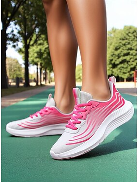 Pinkfarbene Damen-Sneaker mit Luftpolsterung – leichte Mesh-Schuhe mit rosa Farbverlauf, atmungsaktives Design, bequem zum Laufen, Spazierengehen, für Fitnessstudio-Training und Freizeit.