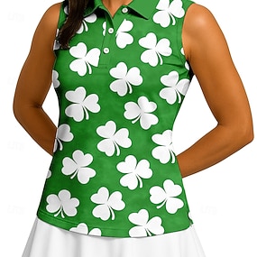 St. Patrick Damen Pflanzen Blumenmuster Kleeblatt Workout-Tanktop Oberteile Shirt Sporthemd Ärmellos Sportlich UPF50+ UV-beständig Trainer Tanzen Atmungsaktiv Pilates Cheerleader-Kostüme Volleyball