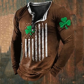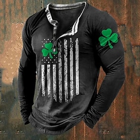 St. Patrick's Day Herren Henley Shirt Tee Grafik Kleeblatt Nationalflagge Henley Kleidung Bekleidung 3D Druck Alltag St. Patrick's Day Langarm Button-Down Druck Fashion Designer