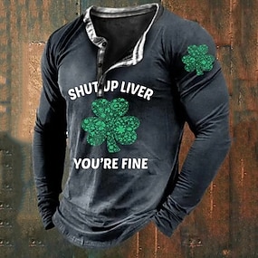 St. Patrick's Day St. Paddys Kleeblatt Herren Lässiges 3D-Druck Henley T-Shirt Tee Lässiges Feiertag T-Shirt Schwarz Blau Grün Langarm Henley-Shirt Frühling Herbst Kleidung Bekleidung S M XL XXL 3XL