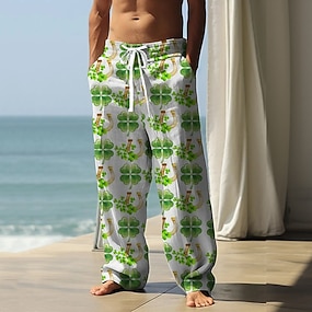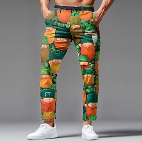 St. Paddy's St. Patrick's Day Shamrock Classic Herren Freizeit 3D-gedruckte Anzughose flacher Bund gerade Passform entspannte Passform Polyester mittlere Taille Outdoor-Streetwear tägliche Bekleidung