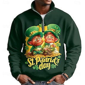 St. Patrick's Day Männer Shamrock Irland Sweatshirt Mode Übertrieben Party Hoher Hals Outdoor Streetwear Club Party Grün Zip Up Herbst Winter Designer S M L XL XXL XXXL