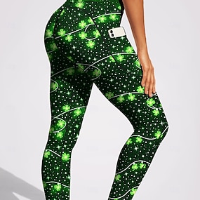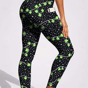 St. Patrick Damen Pilates-Leggings Fitnesshose Trainingsleggings Taschen Stempelsteuer Seitentaschen Pilates Fitnessstudio Fitnesstraining Hosen Strumpfhosen Leggings Blumenmuster Kleeblatt Grün Sport