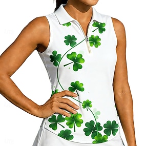 St. Patrick Damen Blumenmuster Kleeblatt Oberteile Sporthemd Golf-Poloshirt Tank Top Ärmellos Reißverschluss Blumen UPF50+ UV-beständig Hohe Elastizität Feuchtigkeitsableitend Atmungsaktiv Volleyball