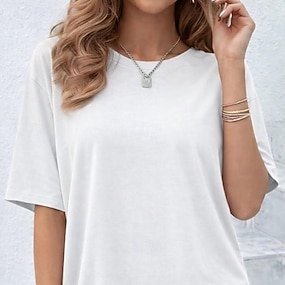 Damen Übergroße T Shirt T-Shirt 100% Baumwolle Einfarbig Stilvoll Klassisch Lässig Kurzarm Rundhalsausschnitt Rundhals Normale Oberteile Täglich Ausgehen Schwarz Weiß Marineblau Dunkelgrün Braungrau