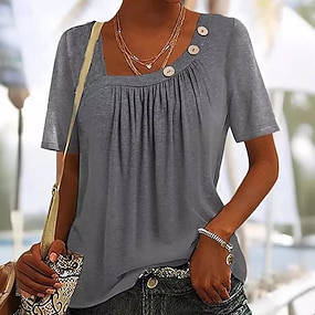 Damen T Shirt Henley Hemd T-Shirt Gerafft Knöpfe Einfach Mode Kurzarm Henley Crop Tops Lässig Strand Schwarz Weiß Rosa Wein Grau Sommer