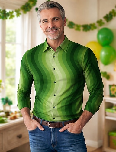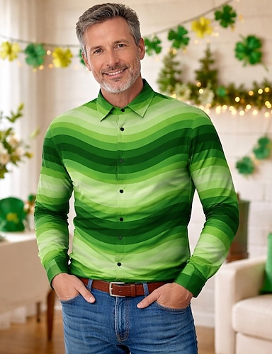 St. Patrick 2026 Retro Vintage 1970er Hemd Aloha-Hemd langarm Hippie Kostüm Herren Maskerade 4. Juli Party Festival Erwachsene Hemd
