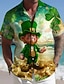 St. Patrick's Day Herren Shamrock Bier Leprechaun Hemd Cuban Kragen Hemd Kurzarm Vintage Retro Outdoor Feiertag Sommer Frühling Camp-Kragen 3D-Druck Button-Up Hemden Grün 1 Grün 2 Grün